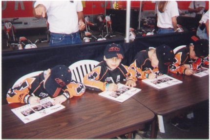 Dad just bought Geoffy a 1999 R & D KTM Pro Sr. AMA bike to race this season. Geoffy's next big race is in Las Vegas at the World Mini in April 2000. He will finish the California Gold Cup Series and then race SSC's 2000 Castaic Brick Spring National in Gorman.